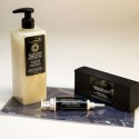 V injekcijo dodajte 20 ml destilirane vode, pretresite in počakajte 2 uri pred prvo uporabo. Priporočamo, da se hranijo v hladilniku. Naredite pol obrata na injekciji (0,5 ml- toliko potrebujete za en tretma), potem liposome potisnite ven in dodajte v posodo kamor ste predhodno 2x pumpnili gel, zmešajte in nanesite na obraz. Gel je namenjen temu, da vlaži. Liposome uporabite po pilingu (lahko tudi samostojno) in jih pustite 15-20 minut na koži. Za še boljši učinek lahko uporabite radiofrekvenco vsaj za 1 minuto ali elektroporacijo (jo lahko uporabite prej in potem). Če uporabite radiofrekvenco se bo učinek skoncentriral na enem mestu, ker se bodo liposomi odprli in sprostili aktivne sestavine na tem mestu. Liposomi se sprostijo ob temperaturi 39 stopinj C, kar lahko dosežeš tudi s segrevanjem s paro (takoj odpre liposome) ali infrardečo svetlobo. Liposomi se v vsakem primeru odprejo v dnevu ali 2-eh.